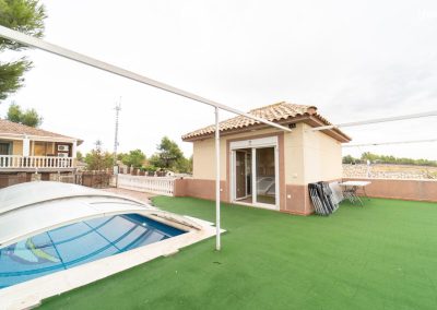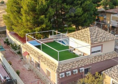 Cada casa tiene aproximadamente 800 m² de espacio exterior privado y un vallado perimetral que garantiza independencia. No obstante, existen puertas de conexión para unificar zonas si el cliente lo solicita.